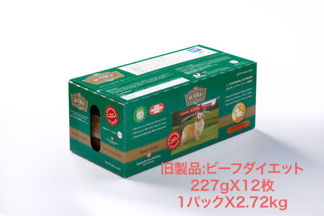 | 原材料 | 牛(肉、粉砕骨と軟骨、肝臓、洗浄されたトライプ、腎臓、心臓、脾臓)、人参、グリーンバナナ、インゲン、レタス、小麦若葉、オレンジ、ストロベリー、サイリユム、ケルプ、有機フルボ酸 ■合成保存料、人工着色料は一切使用しておりません。 ■AAFCOの給餌試験をクリアしております。全年齢用の総合栄養食 |